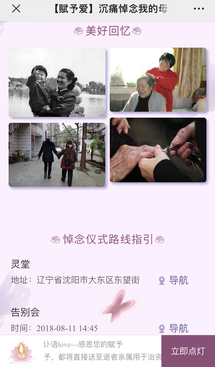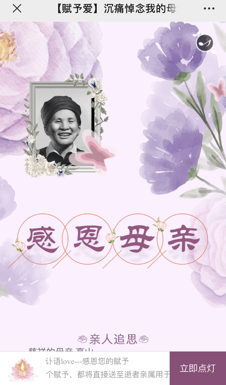 孝子部落的赋予爱平台则可以简化用户的治丧流程,如3分钟为家属制作讣告、一键转发讣告全部通知亲属、追思礼金记录永久保存、随礼抚恤金一键提现、纪念日提醒更省心、商业信息全面展示更放心等。