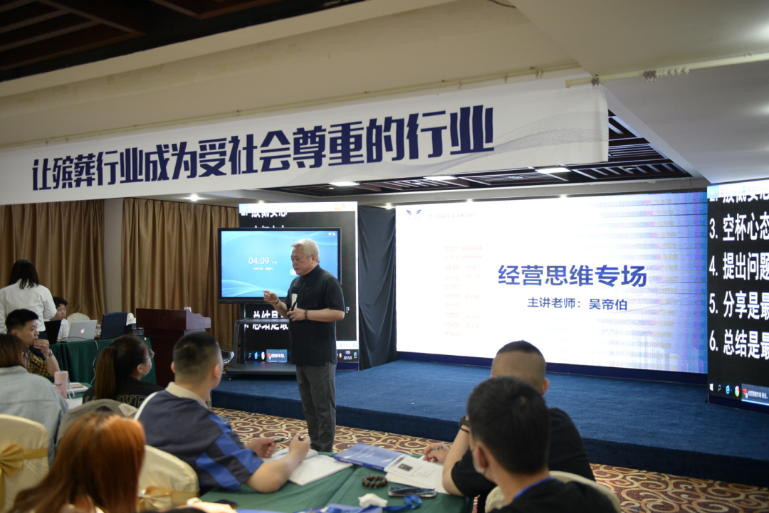 5月24日-26日,孝子部落2021全新升级版《殡葬经营策略实战班》经营思维专场在沈阳圆满结束,吴帝伯老师结合新时代的特征,引经据典点明了破解殡葬行业混乱局面的思考与实践,指出了未来殡葬企业成为行业头部的方法和路径,阐述了殡葬机构人才管理建设的思路和方法。